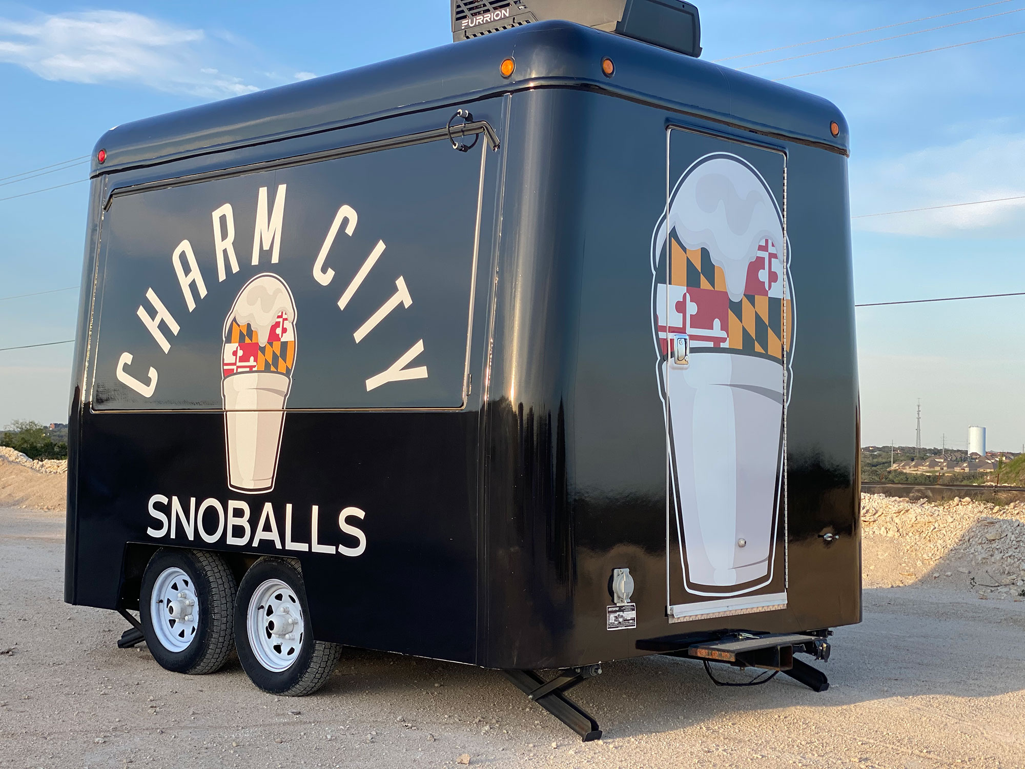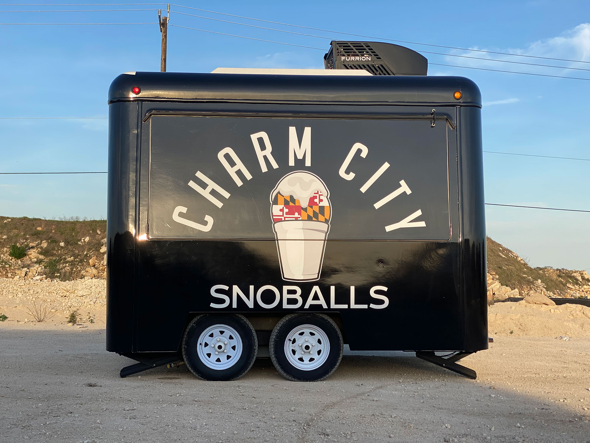 When Jennifer, a Baltimore Maryland native, was pregnant with their 2nd child, she only had one craving... Chocolate Snoball with marshmallow, a TRUE baltimore flavor combo. In an attempt to swoon his very pregnant wife, Jason began shopping online for equipment to make at-home snoballs. While doing an online search and finding himself in an internet rabbit hole, Jason came across a snoball concession trailer for sale. After a little deliberation, Charm City SnoBalls was born.